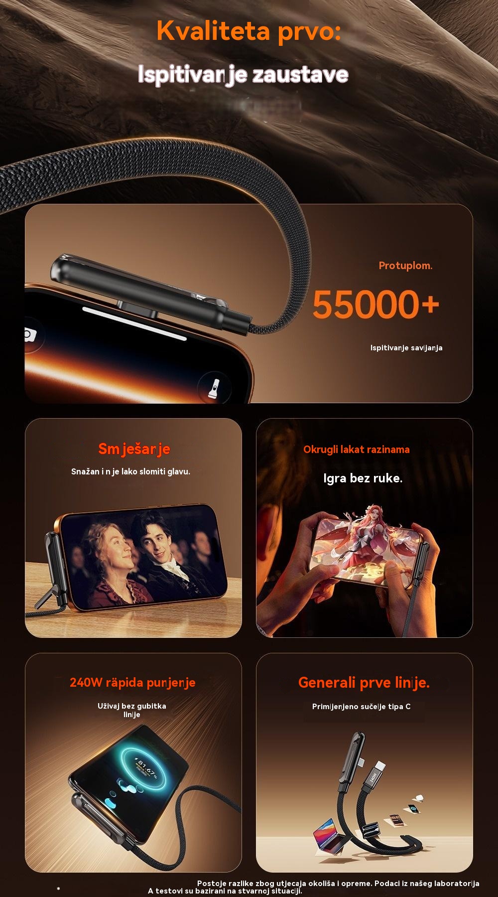 Plaćanje pouzećem 🔥⚡ 2-u-1 kabel za brzo punjenje s podesivim držačem za telefon 🔋