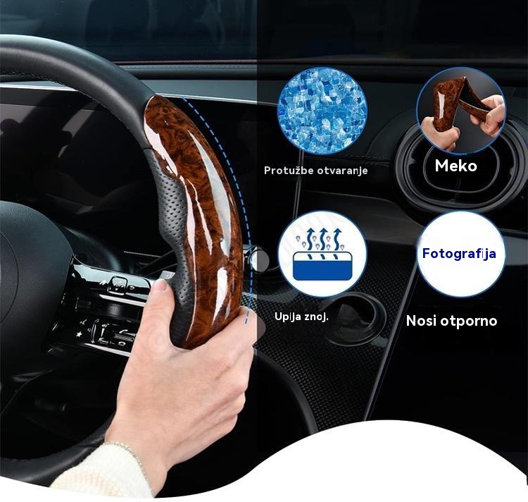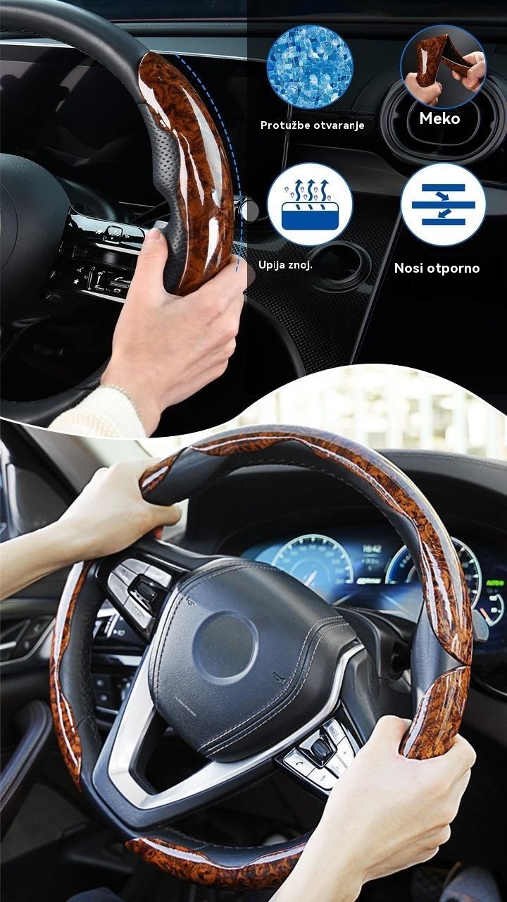 🚗【1 set od 3 komada】👍👍Protuklizna drvena navlaka za volan automobila
